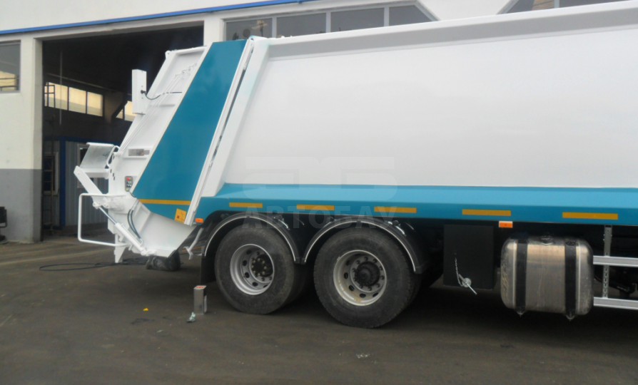 Мусоровозное оборудование установлено на шасси с полной массой 26 тонн. Оборудование оснащено кантователем контейнеров для механической выгрузки мусора из контейнера объёмом 120, 240, 360 литров, баков 0,75 и 0,8 куб. м. и евроконтейнеров 1,1 куб. м. в приемный бункер мусоровоза.