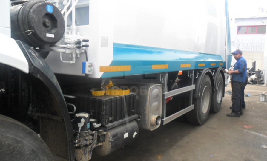 В мусоровозном оборудовании предусмотрена система отвода жидкости, образующейся в процессе прессования. Система состоит из заглубления в передней части надстройки с последующим отводом в бак для сбора жидкости и сливного крана из загрузочного бункера.