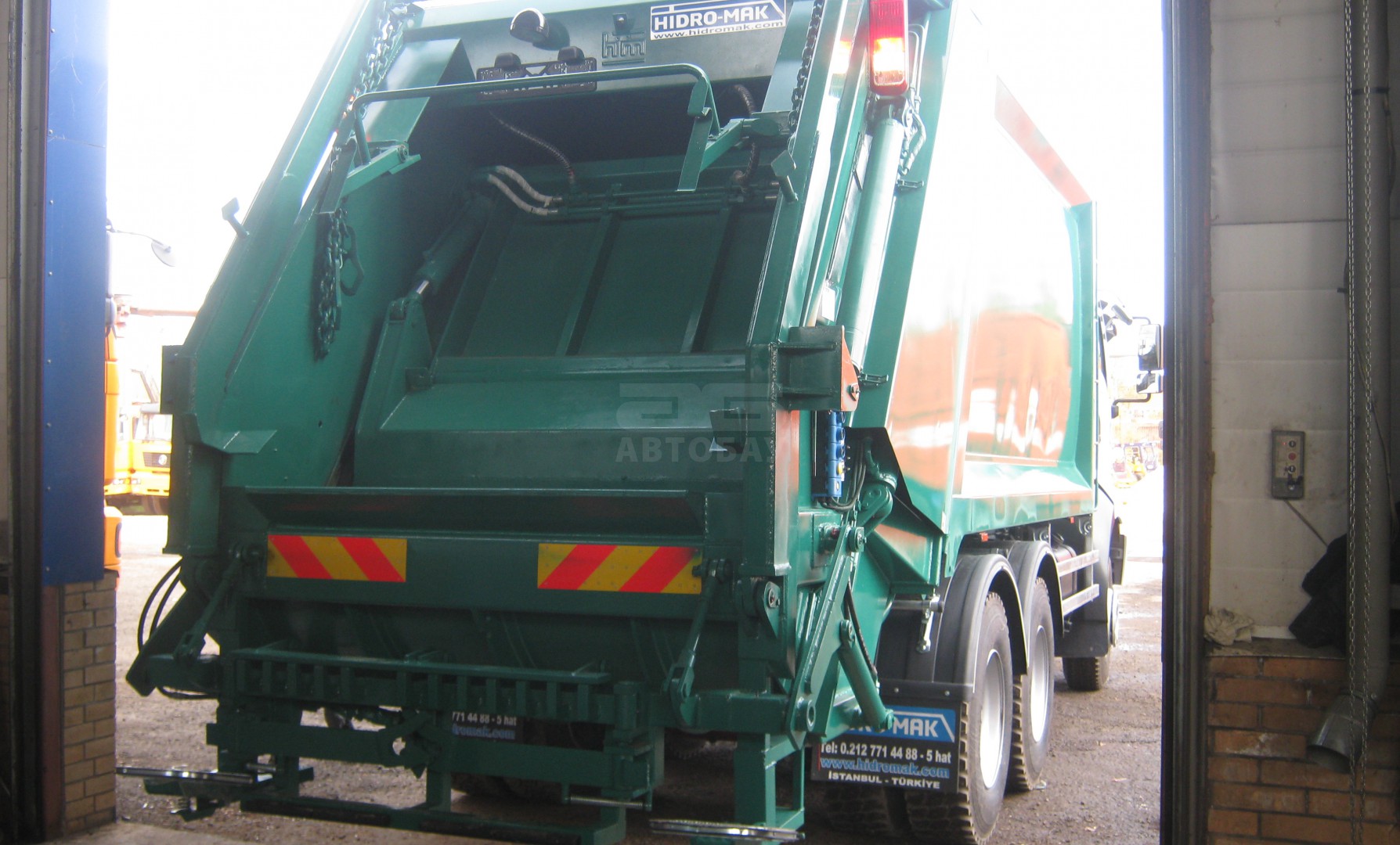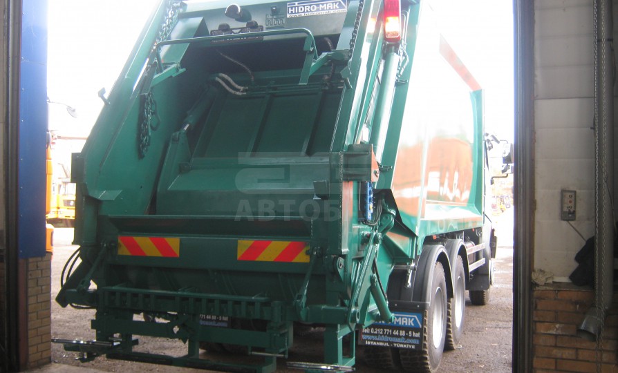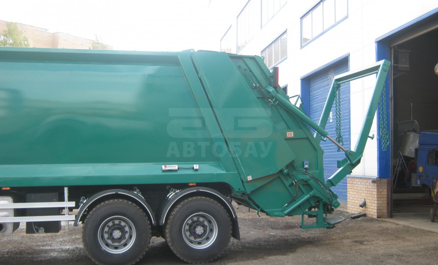 Мусоровозное оборудование установлено на шасси с полной массой 26 тонн. Оборудование оснащено кантователем контейнеров для механической выгрузки мусора из контейнера объёмом 120, 240, 360 литров, баков 0,75 и 0,8 куб. м. и евроконтейнеров 1,1 куб. м. в приемный бункер мусоровоза.