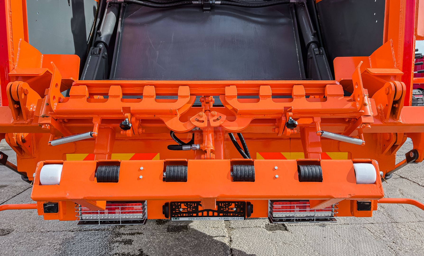 Мусоровозное оборудование установлено на шасси с полной массой 33 тонн. Оборудование оснащено кантователем контейнеров для механической выгрузки мусора из контейнера объёмом 120, 240, 360 литров, баков 0,75 и 0,8 куб. м. и евроконтейнеров 1,1 куб. м. в приемный бункер мусоровоза.