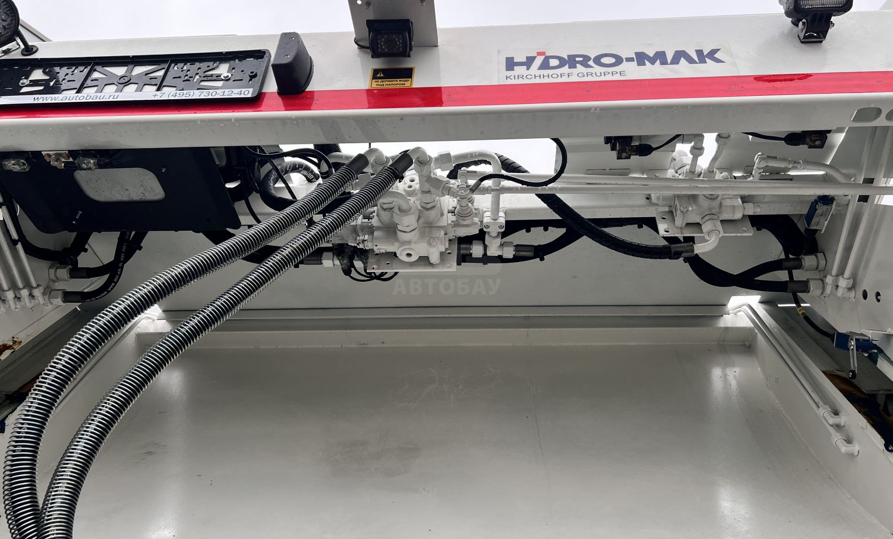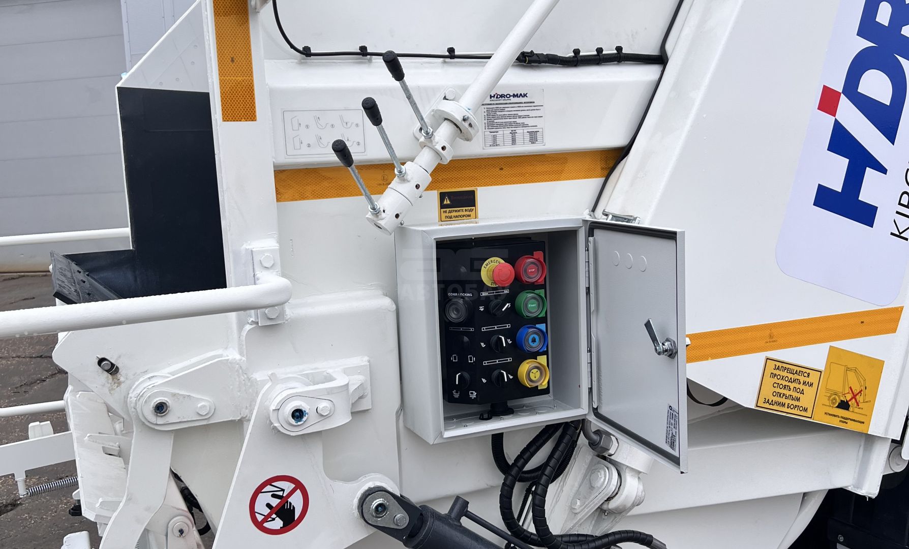 - Выталкивающая плита – специальной геометрической формы с уплотнителем, позволяет увеличить полезный объём кузова и обеспечивает более равномерные нагрузки на оборудование при прессовании и выгрузке мусора (совместная разработка HIDRO-MAK и FAUN KIRCHHOFF Gruppe)