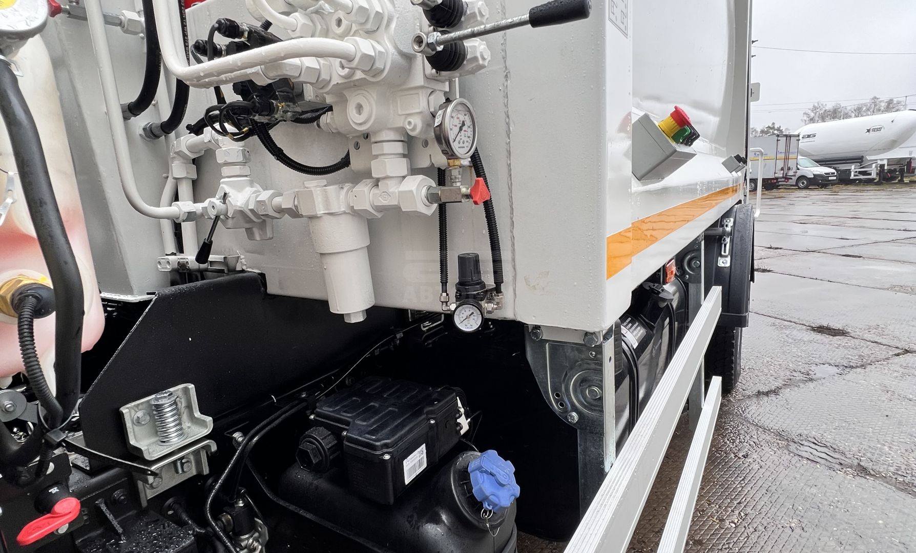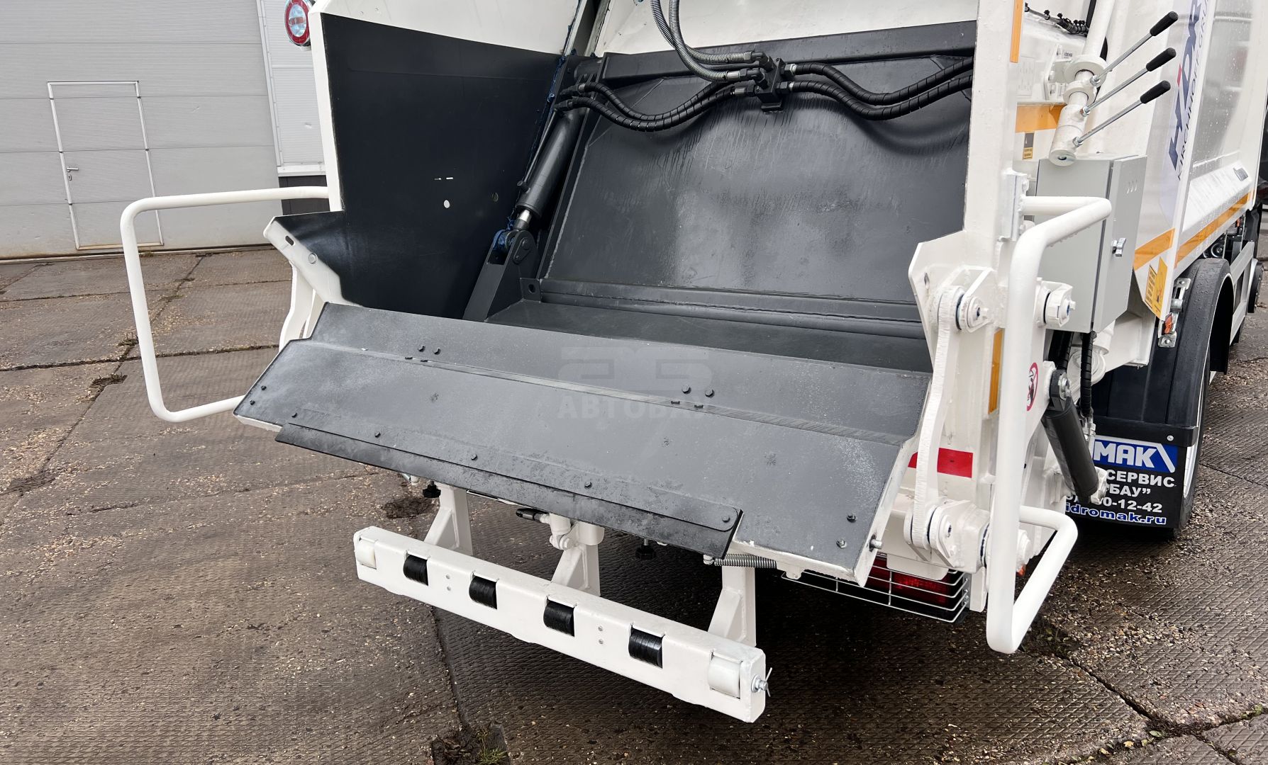 В мусоровозном оборудовании предусмотрена система отвода жидкости, образующейся в процессе прессования. Система состоит из заглубления в передней части надстройки с последующим отводом в бак для сбора жидкости и сливного крана из загрузочного бункера.