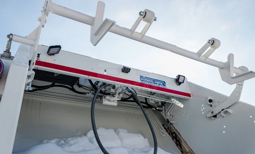 Кантователь VARIO с универсальным захватом для всех типов контейнеров (от 0,12 до 1,1 куб. м.) Выталкивающая плита – специальной геометрической формы с уплотнителем, позволяет увеличить полезный объём кузова и обеспечивает более равномерные нагрузки на оборудование при прессовании и выгрузке мусора (совместная разработка HIDRO-MAK и FAUN KIRCHHOFF Gruppe)