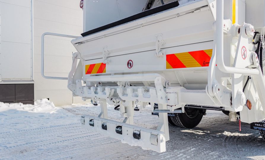 В мусоровозном оборудовании предусмотрена система отвода жидкости, образующейся в процессе прессования. Система состоит из заглубления в передней части надстройки с последующим отводом в бак для сбора жидкости и сливного крана из загрузочного бункера.