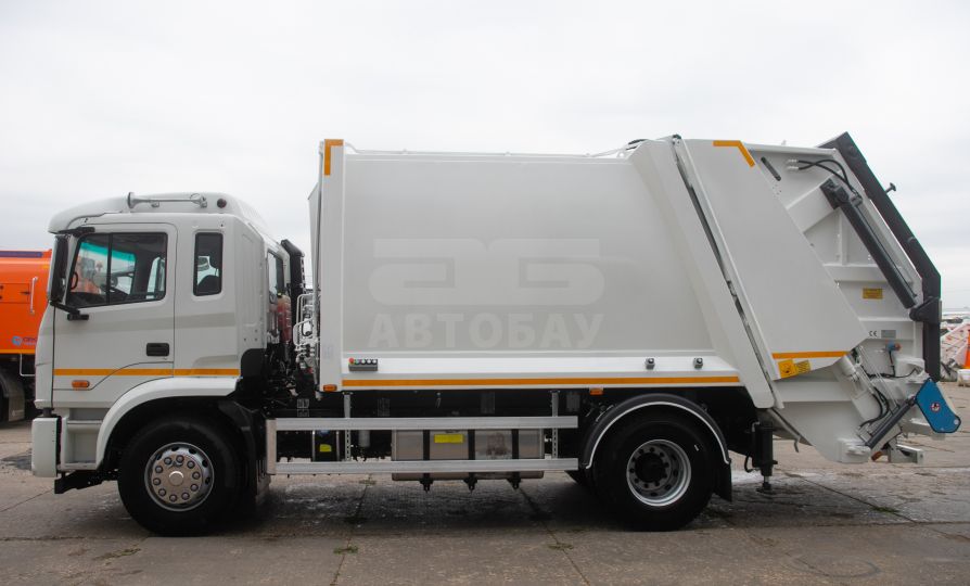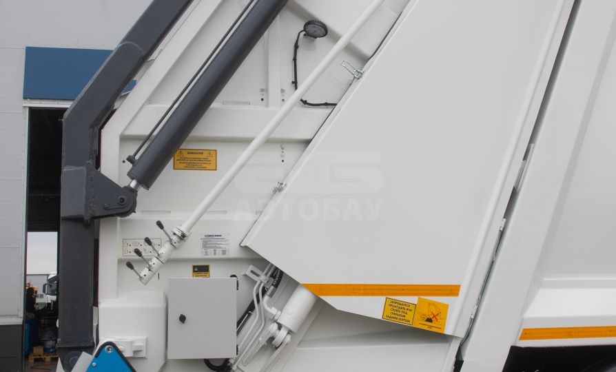Мусоровоз имеет прессующую плиту, изготовленную из высокопрочной стали, выполняющую функцию забора и прессования отходов из загрузочного бункера в основной (приводится в действие четырьмя гидроцилиндрами), и выталкивающую плиту, которая выполняет функцию обратной нажимной пластины и позволяет производить процесс подпрессовки. В зависимости от плотности отходов, коэффициент уплотнения может увеличиваться до 1:6.