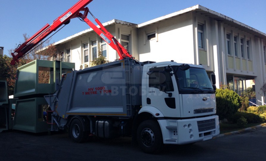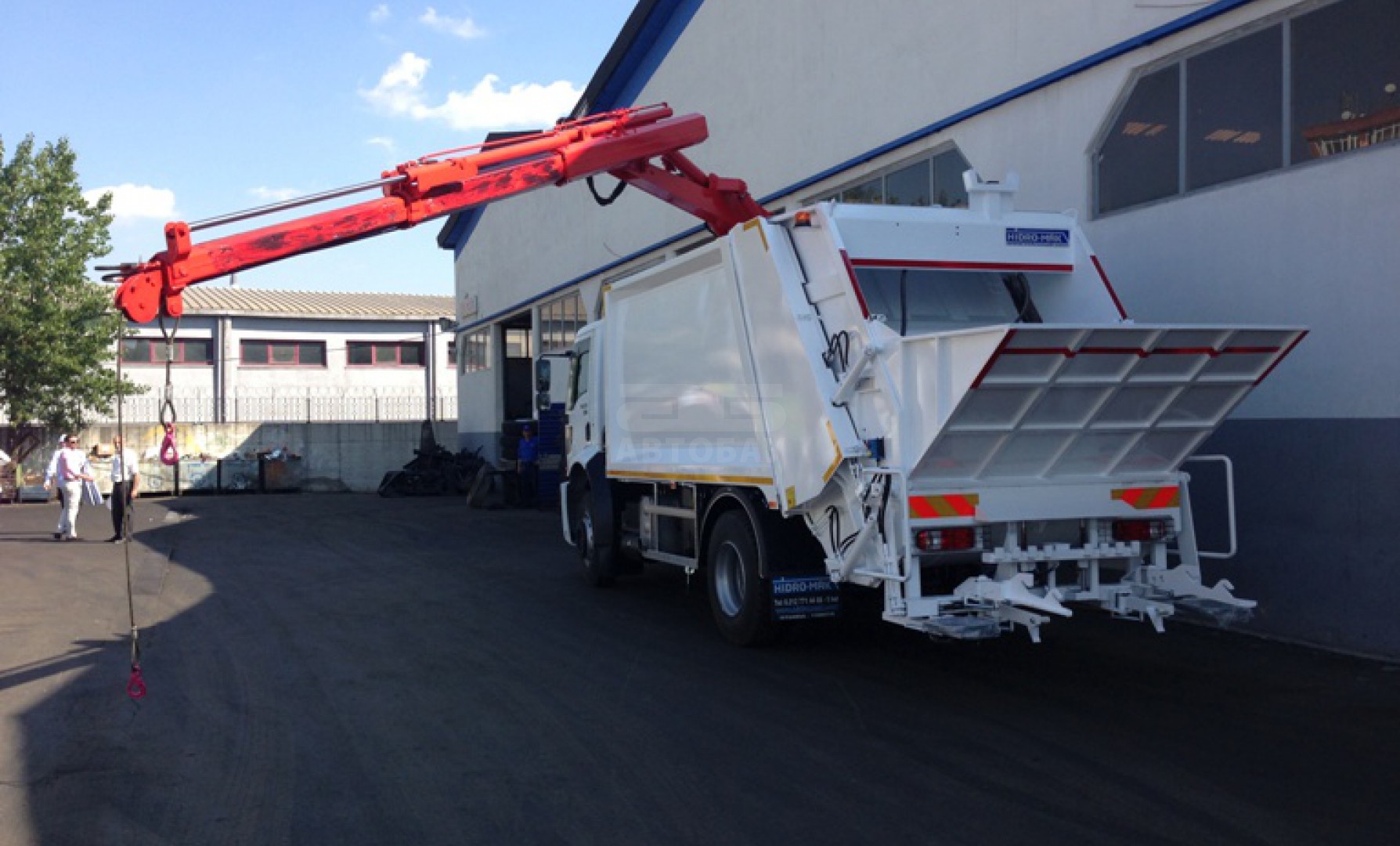 Мусоровоз HIDRO-MAK с КМУ на крыше